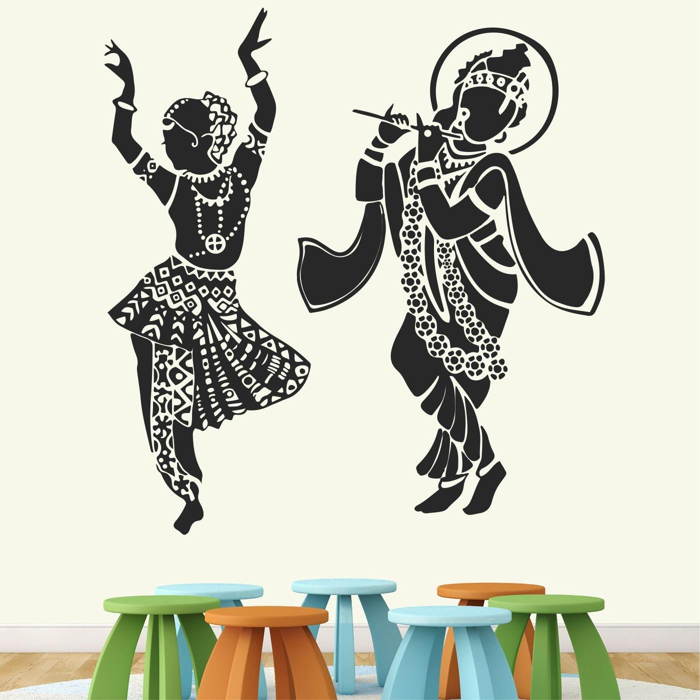 Lord – Radhe Krishna – Hindu God – Radha – Krishna – With Flute – Love – Romantic – Creative – Colorful – Wall Sticker